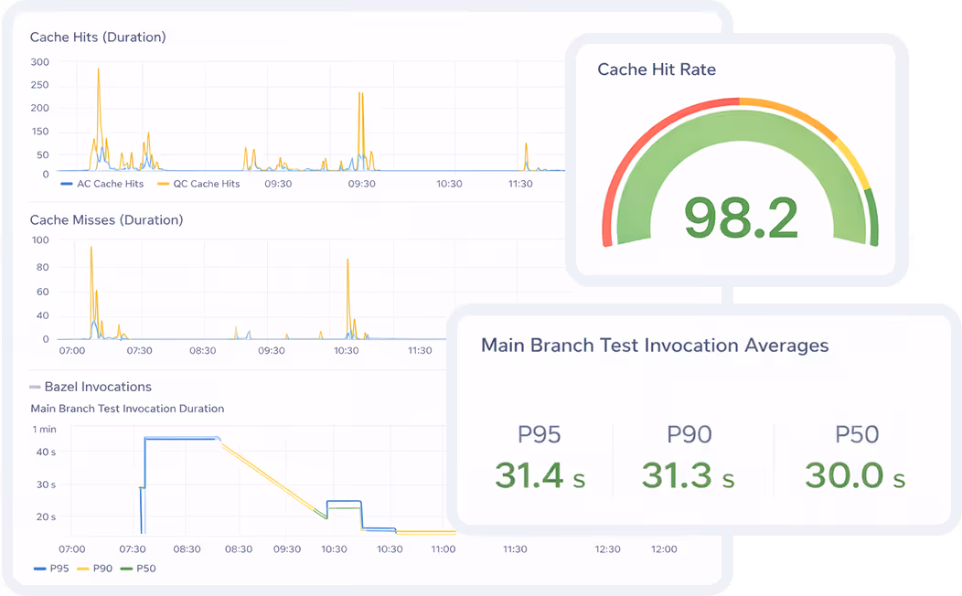Aspect Workflows runs on your cloud and works with your existing continuous integration (CI) provider so you can experience faster builds and reduced costs without additional complexity or disruptive migrations.